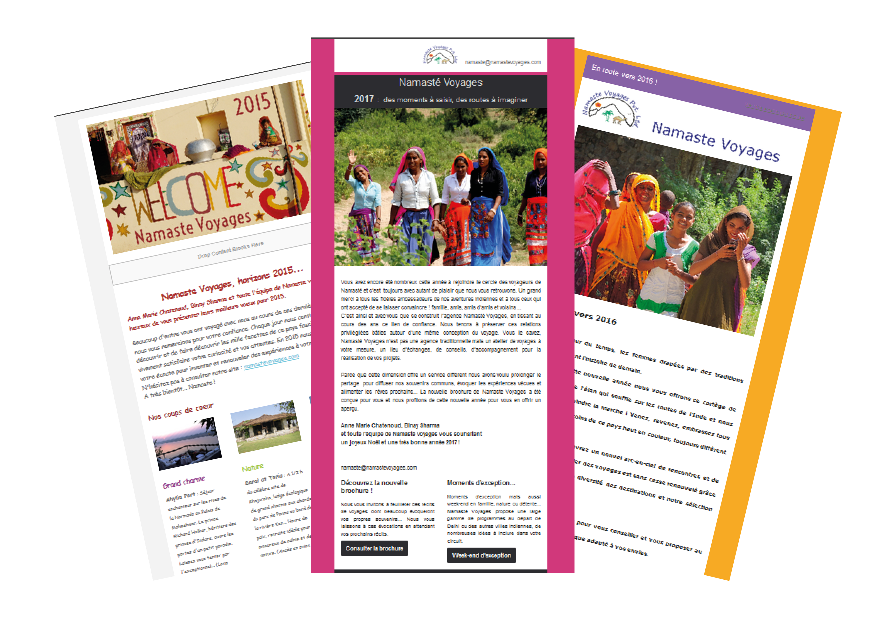 Composition et rédaction des newsletters destinées aux voyageurs de l’agence Namaste Voyages.